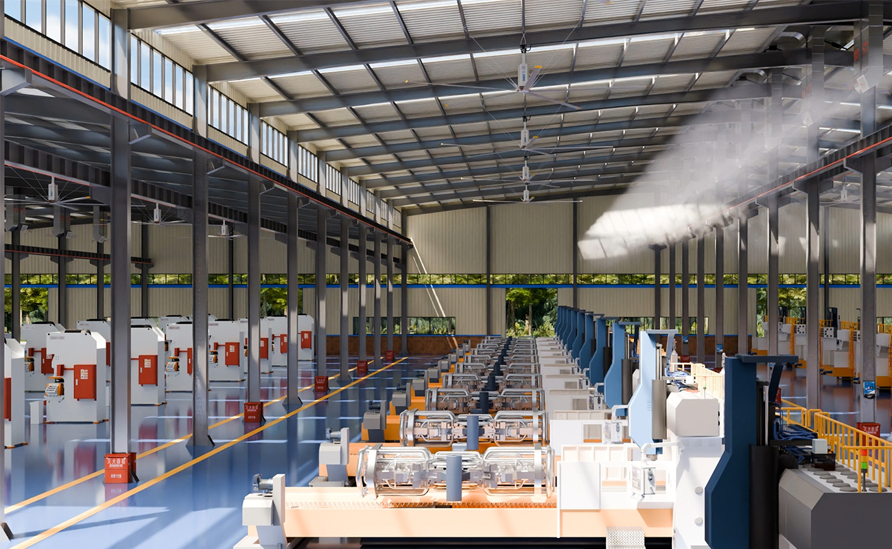 ·设计重点:岗位送风与整体通风相结合。确保冷风直接送达员工工作岗位,同时利用正压原理将车间顶部的高温和污浊空气通过排气扇或门窗排出。关键是要计算总发热量(设备、人员、太阳辐射)。
